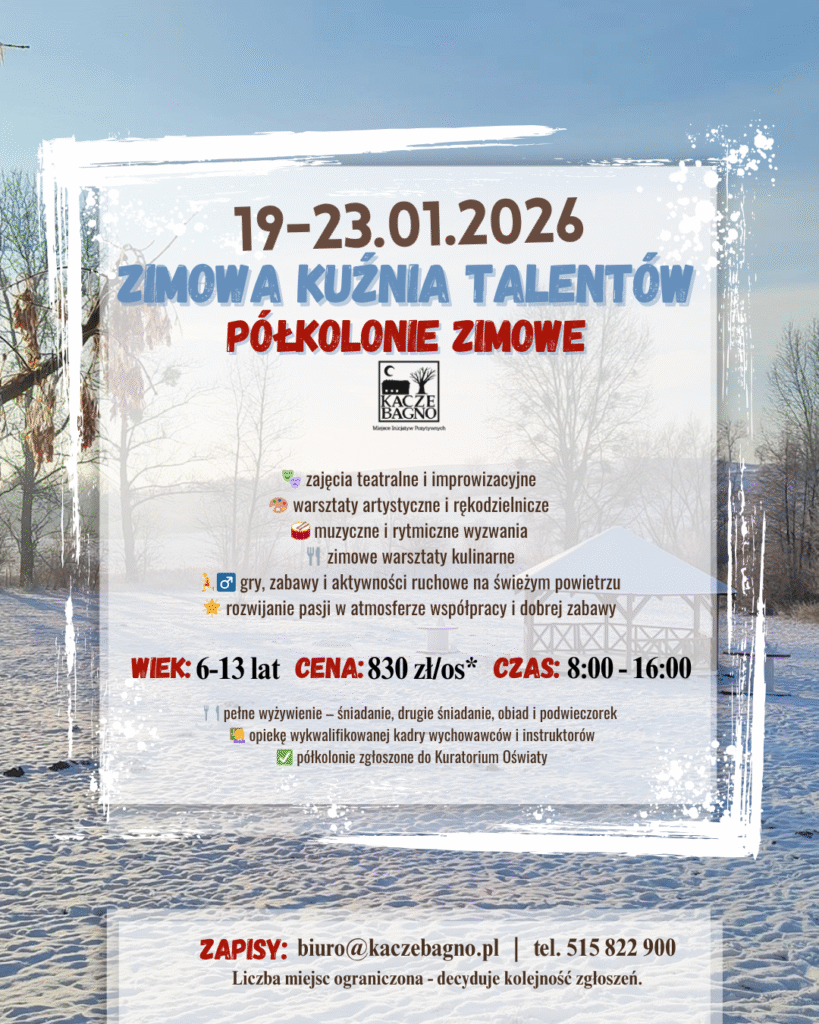 📞 Zapisy i informacje: tel. 515 822 900 | biuro@kaczebagno.pl
